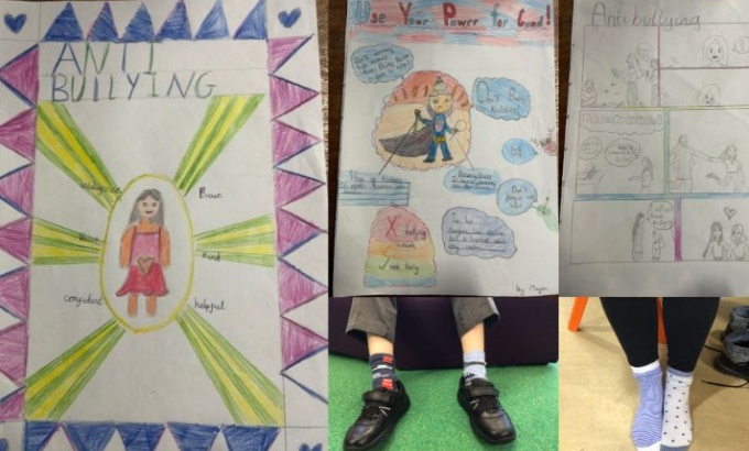 We started with celebrating it by having odd socks on the Monday. Each class chose activities based on this to encourage all our pupils that it is everyone's role to help stop bullying. We asked pupils to complete work such as demonstrating how they use power for good to stop bullying. Below is some of the work to demonstrate the activities children did as well as some photos of our wonderful odd socks!